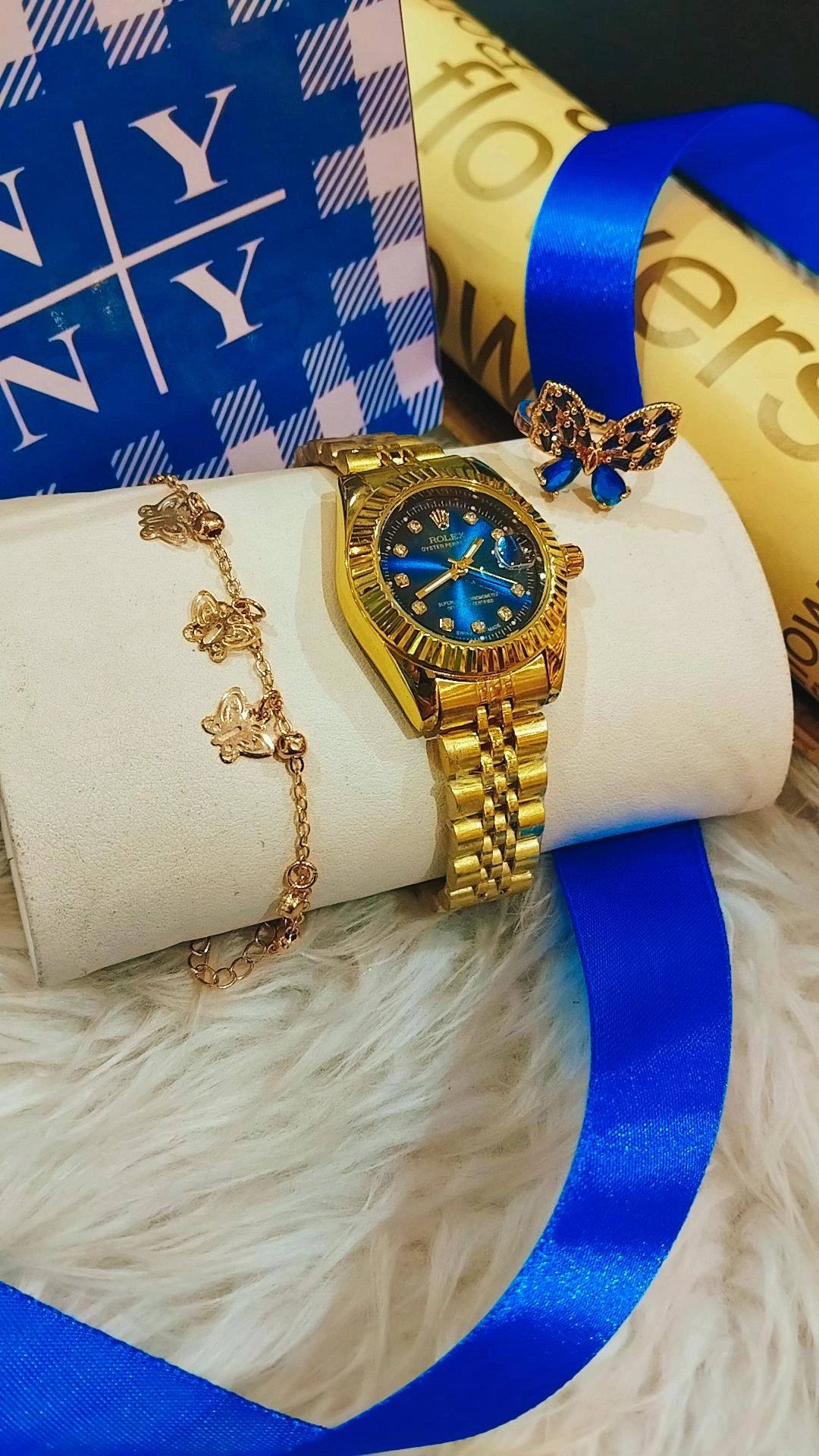 ساعت رولکس زنانه.ست ساعت دستبند وانگشتر
